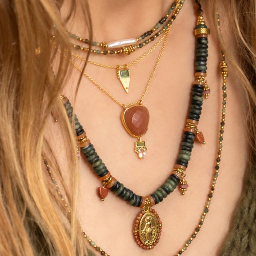 MUJA JUMA Halskette MIXED, Tigerauge & Turmalin, in Gold