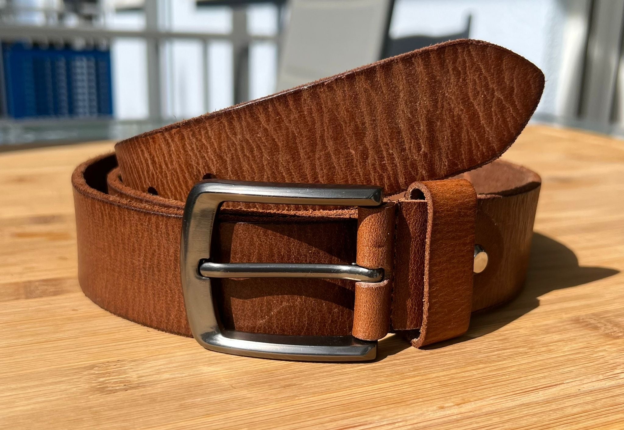 Das Premium Vollrindleder erhält durch eine rein pflanzliche Gerbung seinen tollen Charakter und hat einen schönen Vintage-Look. Es ist die Grundlage für diesen außergewöhnlich tollen Gürtel. Ideal zu Jeans oder Chino Hosen.