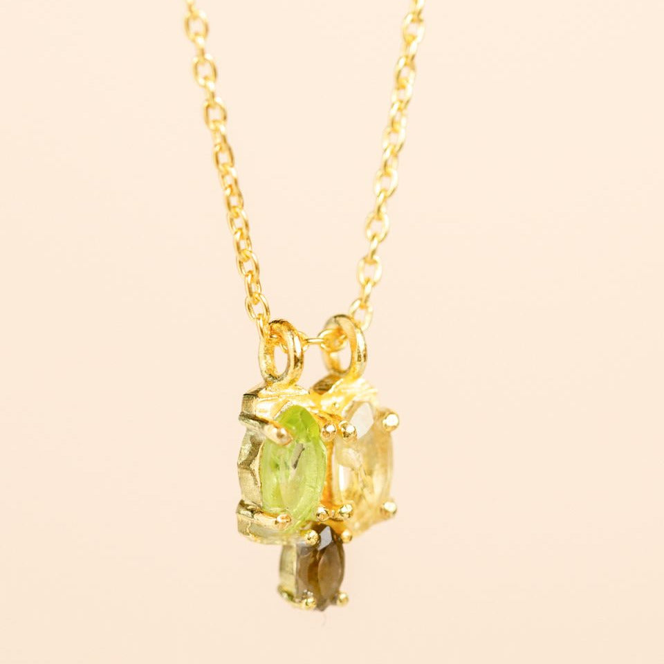 Vergoldete MUJA JUMA Kette aus echtem Sterlingsilber 925 mit einem Anhänger aus drei Marquise Halbedelsteinen: Peridot-, Citrin und Rauchquarz- Steinen.